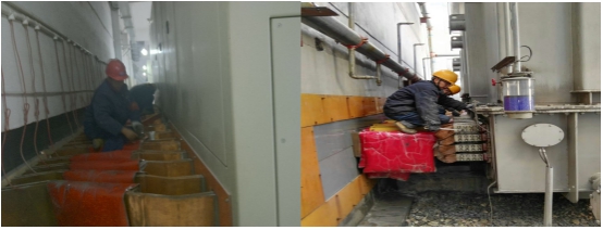 今年,對動力供電系統(tǒng)的濾油和檢修自2016年11月11日開始至2016年12月14日結束,歷時34天,在車間負責人的帶領下,運行各班組按照要求統(tǒng)一協作,以飽滿的工作熱情與低溫天氣和各種困難作斗爭,將工作重心圍繞在機組濾油和供電系統(tǒng)全面檢修上,他們有條不紊對計劃安排的整流柜銅母線螺栓、一次高壓開關和刀閘的瓷瓶、保護二次系統(tǒng)的端子排、控制柜進行全面清掃及螺絲緊固,對變壓器進行清洗,同時加強設備巡視,對濾波系統(tǒng)檢查出的刀閘操作機構嚴重銹蝕,銅鋁過渡連接板開裂等進行了及時處理,認真進行消缺,保證了供電安全平穩(wěn)。
