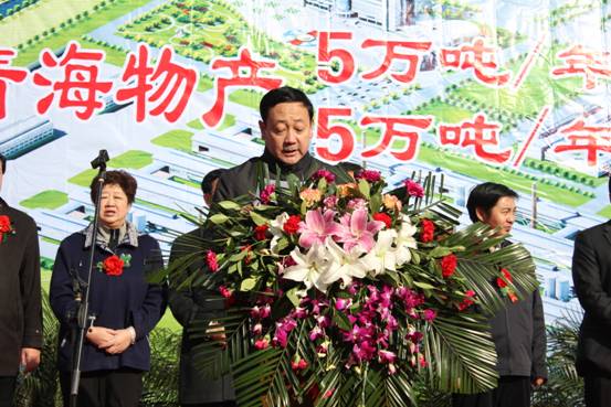 此次投產(chǎn)慶典儀式由青海省國資委副主任毛占彪主持,青海省委常委、副省長駱玉林、青海省人大副主任桑杰、青海省經(jīng)濟委員會主任、青海省政府國資委副主任吳海昆、西寧市政府副市長許國成、中共大通縣縣委書記吳海、大通縣人民政府縣長韓生才、青海省物產(chǎn)集團總公司總經(jīng)理、青海物產(chǎn)工業(yè)投資有限公司董事長王玉輝、青海省物產(chǎn)集團總公司黨委書記白家林以及省、市、縣有關(guān)部門的負(fù)責(zé)同志參加了投產(chǎn)慶典儀式。